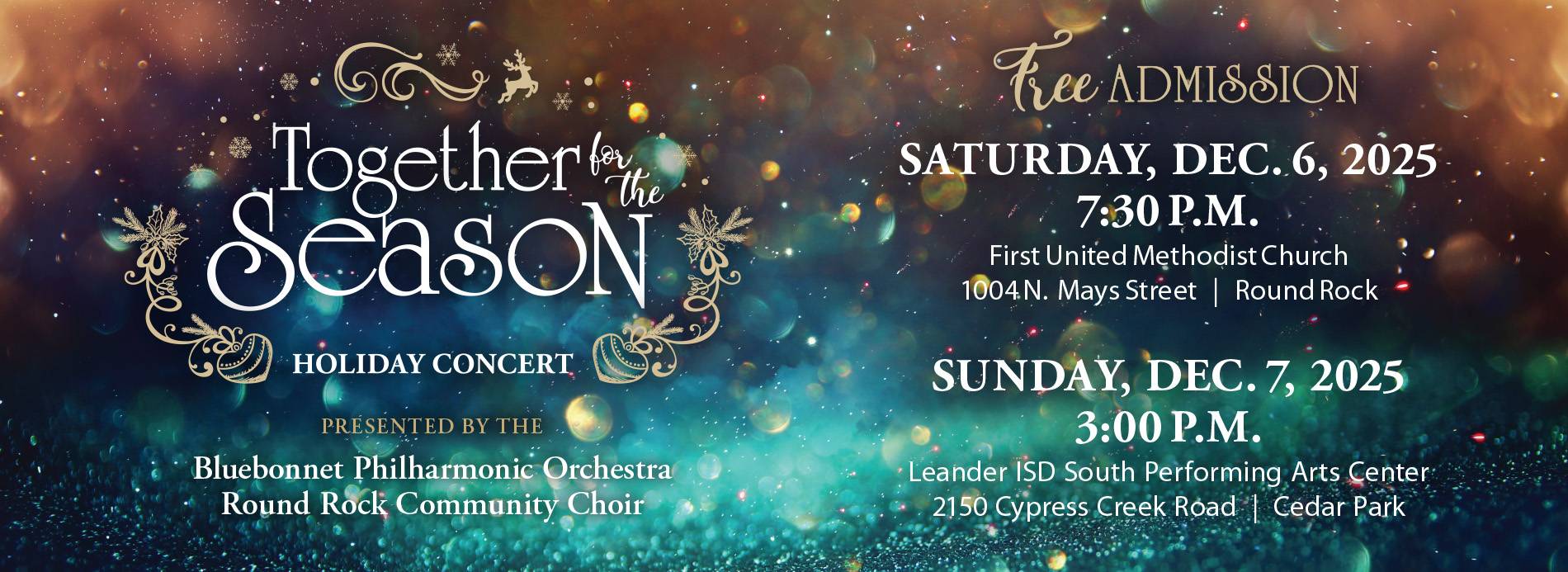 The Round Rock Community Choir sings with excellence while celebrating the joy and power of music. From sacred requiems to American Folk music, Broadway hits to holiday favorites, our performances reflect a wide range of musical styles. Our membership is as diverse as our repertoire. Our volunteer members hail from across Central Texas and represent a wide variety of ages, musical backgrounds, and training. But we agree on one thing. Since 1985, our commitment to artistic excellence and community enrichment remains the cornerstone of the organization as we provide concert-goers with the finest choral experiences, featuring challenging and exciting programs performed by a talented ensemble of singers.