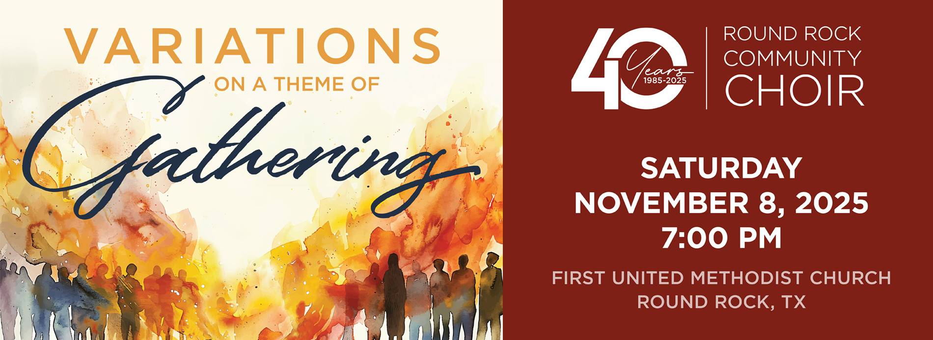 The Round Rock Community Choir sings with excellence while celebrating the joy and power of music. From sacred requiems to American Folk music, Broadway hits to holiday favorites, our performances reflect a wide range of musical styles. Our membership is as diverse as our repertoire. Our volunteer members hail from across Central Texas and represent a wide variety of ages, musical backgrounds, and training. But we agree on one thing. Since 1985, our commitment to artistic excellence and community enrichment remains the cornerstone of the organization as we provide concert-goers with the finest choral experiences, featuring challenging and exciting programs performed by a talented ensemble of singers.